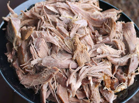 Mausta liha haluamallasi tavalla. Minulla oli nyt Arizonasta ostettua maple-jalapeno-mausteseosta pari rkl, sen voisi hyvin korvata kuivatulla chililllä, vaahterasiirapilla, pippurilla ja suolalla. Laita liha uunivuokaan, pilko sipulit mukaan. Lisää ½-1 prk chipotle-chiliä (pakasta loput jos et käytä koko purkkia), vesi, etikka, sokeri ja soijakastike. Peitä vuoka foliolla ja paista 150 asteessa n. 5-6 tuntia. Käännä liha puolessa välissä paistamista.